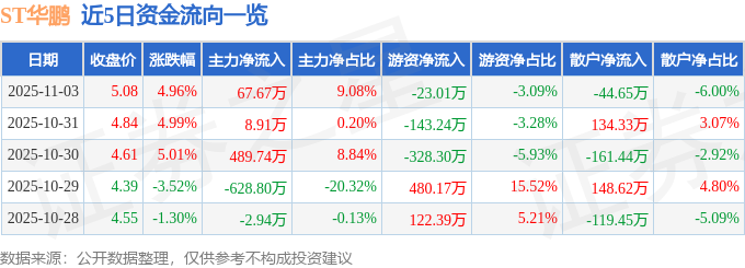 近5日资金流向一览见下表: