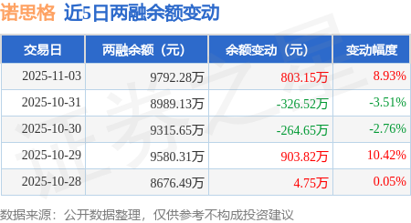 证券之星消息,11月3日,诺思格(301333)融资买入5466.26万元,融资偿还4663.11万元,融资净买入803.15万元,融资余额9792.28万元。