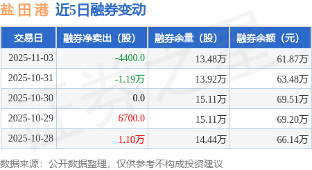 证券之星消息,11月3日,盐 田 港(000088)融资买入2283.75万元,融资偿还1711.88万元,融资净买入571.87万元,融资余额2.99亿元。