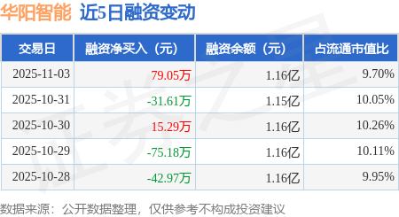 证券之星消息,11月3日,华阳智能(301502)融资买入446.94万元,融资偿还367.89万元,融资净买入79.05万元,融资余额1.16亿元。
