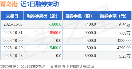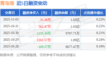 证券之星消息,11月3日,青岛港(601298)融资买入1592.92万元,融资偿还1561.64万元,融资净买入31.28万元,融资余额1.03亿元。