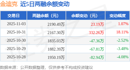 证券之星消息,11月3日,金迪克(688670)融资买入313.67万元,融资偿还290.48万元,融资净买入23.19万元,融资余额2190.49万元。
