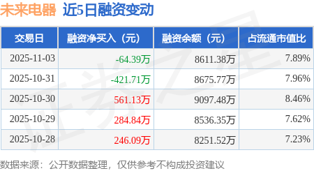 证券之星消息,11月3日,未来电器(301386)融资买入734.18万元,融资偿还798.57万元,融资净卖出64.39万元,融资余额8611.38万元,近20个交易日中有13个交易日出现融资净买入。