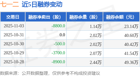 证券之星消息,11月3日,七一二(603712)融资买入1055.05万元,融资偿还1134.83万元,融资净卖出79.78万元,融资余额3.44亿元。