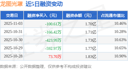 证券之星消息,11月3日,龙图光罩(688721)融资买入619.03万元,融资偿还719.64万元,融资净卖出100.61万元,融资余额1.7亿元,近20个交易日中有12个交易日出现融资净买入。