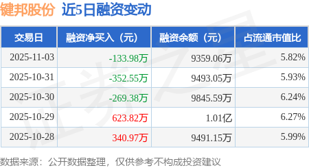 证券之星消息,11月3日,键邦股份(603285)融资买入512.92万元,融资偿还646.9万元,融资净卖出133.98万元,融资余额9359.06万元。