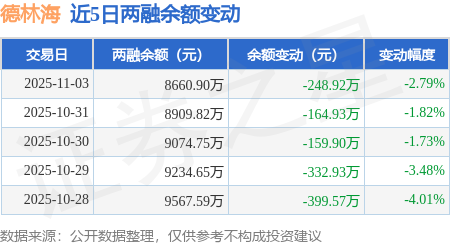 证券之星消息,11月3日,德林海(688069)融资买入657.6万元,融资偿还906.52万元,融资净卖出248.92万元,融资余额8660.9万元。