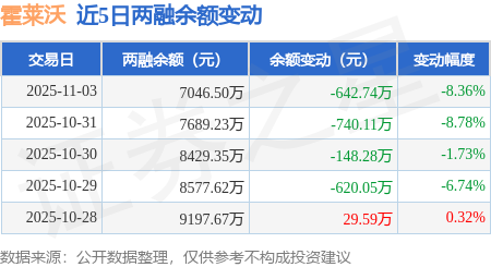 证券之星消息,11月3日,霍莱沃(688682)融资买入688.01万元,融资偿还1330.75万元,融资净卖出642.74万元,融资余额7046.5万元。