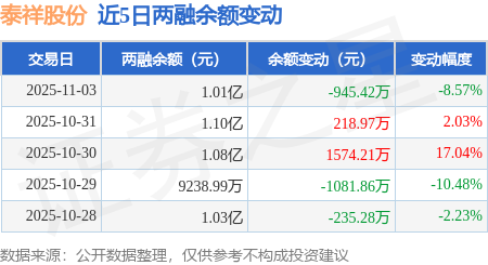 证券之星消息,11月3日,泰祥股份(301192)融资买入1025.14万元,融资偿还1970.56万元,融资净卖出945.42万元,融资余额1.01亿元。