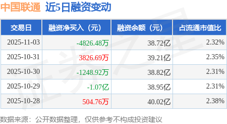 证券之星消息,11月3日,中国联通(600050)融资买入7376.45万元,融资偿还1.22亿元,融资净卖出4826.48万元,融资余额38.72亿元。