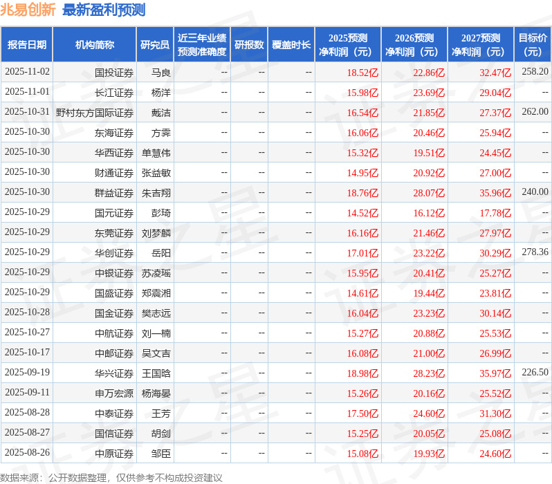 最新盈利预测明细如下: