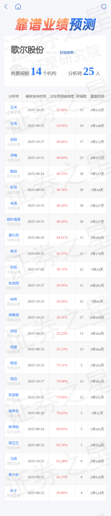 歌尔股份(002241)是基金大佬冯明远的重仓股。,其在整个职业生涯内年化收益高达17.91%。冯明远管理的信澳先进智造股票型A基金在2020年2季度调入歌尔股份,在持有2个季度后在2020年4季度调出,持有期间的估算收益率达到88.67%。(以上数据经过后复权近似计算)冯明远的大佬持仓 - 战绩回顾截图如下: