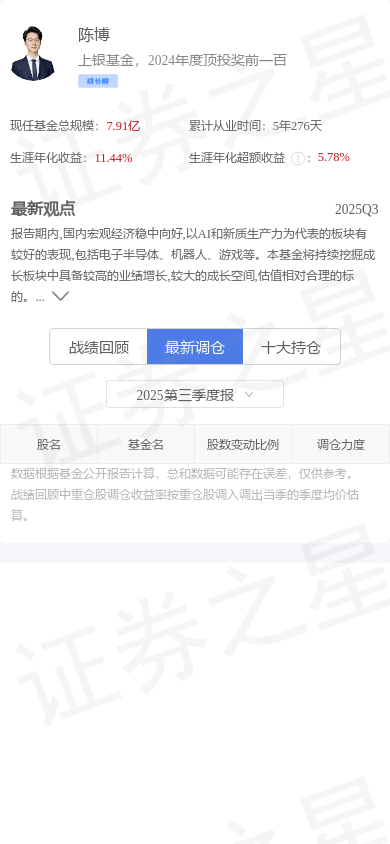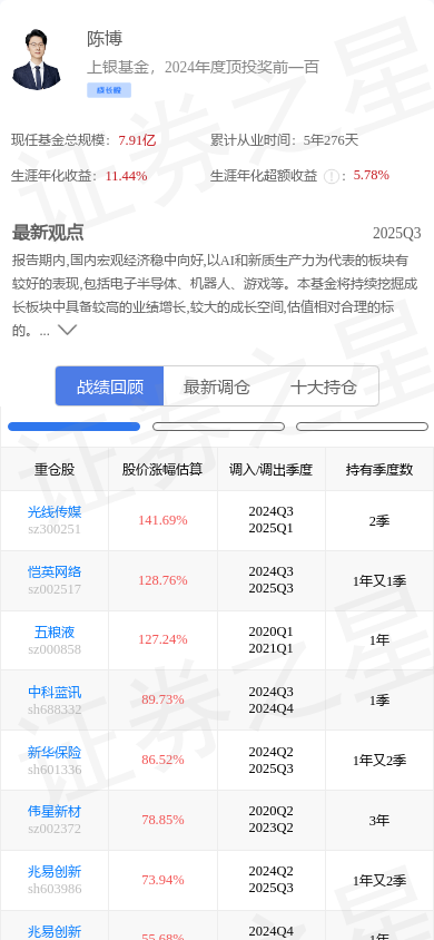可在证星研究院详细查看陈博战绩和分析师对基金持仓的增减仓公司的业绩预测。(更多特色估值数据尽在证星研究院)