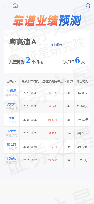 如果您对这家公司感兴趣,可以参考证星研究院统计的粤高速A的分析师业绩预测数据,其中根据华泰证券的分析师林霞颖预测公司未来PE为17.0(更多特色估值数据尽在证星研究院,所有数据均来源公开资料,期且所有资料都存在一定时间滞后,所有相关数据均不可作为投资决策单一依据)。