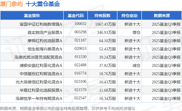 重仓厦门象屿的前十大公募基金请见下表: