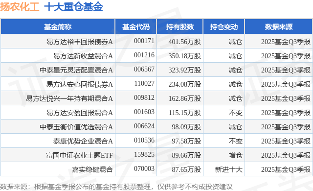 根据2025基金Q3季报公募基金重仓股数据,重仓该股的公募基金共41家,其中持有数量最多的公募基金为易方达基金的易方达裕丰回报债券A。易方达裕丰回报债券A目前规模为169.69亿元,最新净值1.912(11月3日),较上一交易日上涨0.16%,近一年上涨7.6%。该公募基金现任基金经理为张清华。张清华在任的基金产品包括:易方达安心回报债券A,管理时间为2013年12月23日至今,期间收益率为263.84%;易方达丰和债券A,管理时间为2016年11月23日至今,期间收益率为59.22%;易方达安盈回报混合A,管理时间为2017年2月16日至今,期间收益率为157.85%。