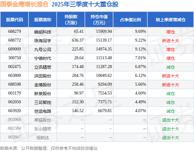 根据2025基金Q3季报公募基金重仓股数据,重仓该股的公募基金共7家,其中持有数量最多的公募基金为国泰基金的国泰金鹰增长混合。国泰金鹰增长混合目前规模为16.42亿元,最新净值1.5577(11月3日),较上一交易日下跌0.85%,近一年上涨58.93%。该公募基金现任基金经理为徐治彪。徐治彪在任的基金产品包括:国泰大健康股票A,管理时间为2017年10月30日至今,期间收益率为55.57%;国泰研究精选两年持有混合,管理时间为2019年12月24日至今,期间收益率为164.7%;国泰价值经典混合(LOF),管理时间为2020年7月24日至今,期间收益率为34.25%。