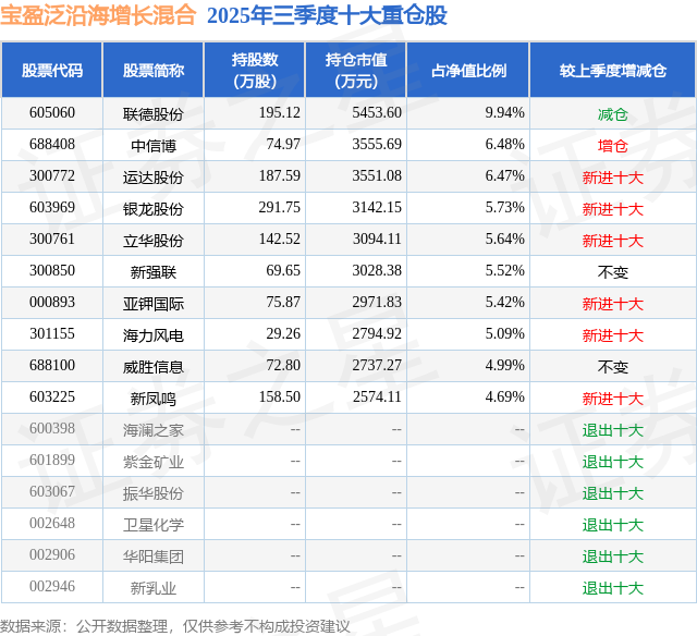 根据2025基金Q3季报公募基金重仓股数据,重仓该股的公募基金共18家,其中持有数量最多的公募基金为宝盈基金的宝盈泛沿海增长混合。宝盈泛沿海增长混合目前规模为5.49亿元,最新净值0.735(11月3日),较上一交易日上涨1.59%,近一年上涨22.56%。该公募基金现任基金经理为李巍宇。李巍宇在任的基金产品包括:宝盈成长精选混合A,管理时间为2024年6月25日至今,期间收益率为55.67%;宝盈价值成长混合A,管理时间为2025年8月30日至今,期间收益率为9.25%。