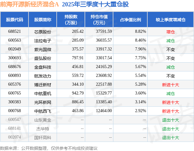 根据2025基金Q3季报公募基金重仓股数据,重仓该股的公募基金共64家,其中持有数量最多的公募基金为前海开源基金的前海开源新经济混合A。前海开源新经济混合A目前规模为38.92亿元,最新净值2.6536(11月3日),较上一交易日上涨0.49%,近一年上涨28.93%。该公募基金现任基金经理为崔宸龙。崔宸龙在任的基金产品包括:前海开源公用事业股票,管理时间为2020年7月20日至今,期间收益率为218.85%;前海开源沪港深非周期股票A,管理时间为2020年7月20日至今,期间收益率为18.63%;前海开源沪港深智慧生活混合,管理时间为2021年6月24日至今,期间收益率为-17.07%。