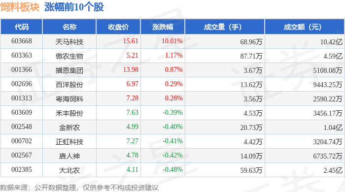 证券之星消息,11月4日饲料板块较上一交易日下跌0.96%,中宠股份领跌。当日上证指数报收于3960.19,下跌0.41%。深证成指报收于13175.22,下跌1.71%。饲料板块个股涨跌见下表: