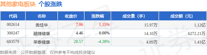 从资金流向上来看,当日其他家电板块主力资金净流出4355.08万元,游资资金净流入993.15万元,散户资金净流入3361.93万元。其他家电板块个股资金流向见下表: