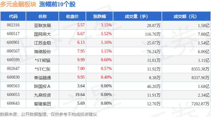 证券之星消息,11月4日多元金融板块较上一交易日下跌0.92%,海南华铁领跌。当日上证指数报收于3960.19,下跌0.41%。深证成指报收于13175.22,下跌1.71%。多元金融板块个股涨跌见下表: