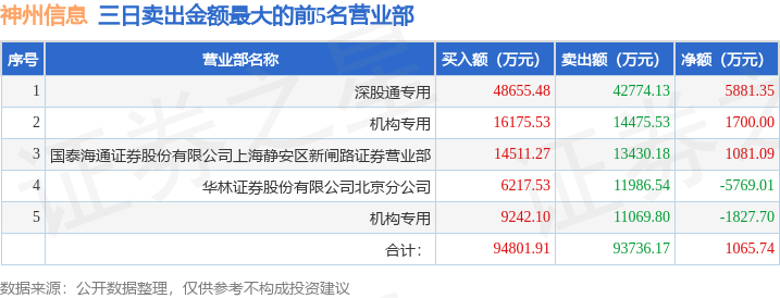 从龙虎榜公布的三日买卖数据来看,机构合计净买入6601.65万元,北向资金合计净买入5881.35万元。上海超短帮、毛老板等知名游资榜上有名。(知名游资上海超短帮一般指国泰海通证券股份有限公司上海静安区新闸路证券营业部席位、知名游资毛老板一般指国泰海通证券股份有限公司北京国贸证券营业部席位、知名游资上海超短帮一般指国泰海通证券股份有限公司上海静安区新闸路证券营业部席位,根据市场资料整理,仅供参考)