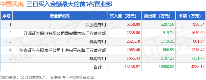 证券之星消息,沪深交易所2025年11月4日公布的交易公开信息显示,中国武夷(000797)因连续三个交易日内,涨幅偏离值累计达到20%的证券登上龙虎榜。此次是近5个交易日内第1次上榜。