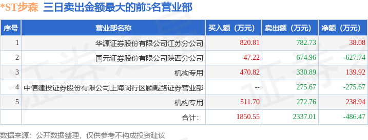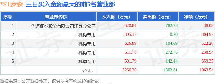 证券之星消息,沪深交易所2025年11月4日公布的交易公开信息显示,*ST步森(002569)因连续三个交易日内,涨幅偏离值累计达到12%的ST证券、*ST证券和未完成股改证券登上龙虎榜。此次是近5个交易日内第1次上榜。
