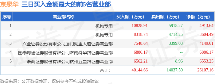 从龙虎榜公布的三日买卖数据来看,机构合计净卖出294.28万元。厦门湖里大道等知名游资榜上有名。(知名游资厦门湖里大道一般指兴业证券股份有限公司厦门湖里大道证券营业部席位,根据市场资料整理,仅供参考)