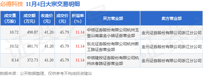 证券之星消息,11月4日必得科技发生大宗交易,交易数据如下: