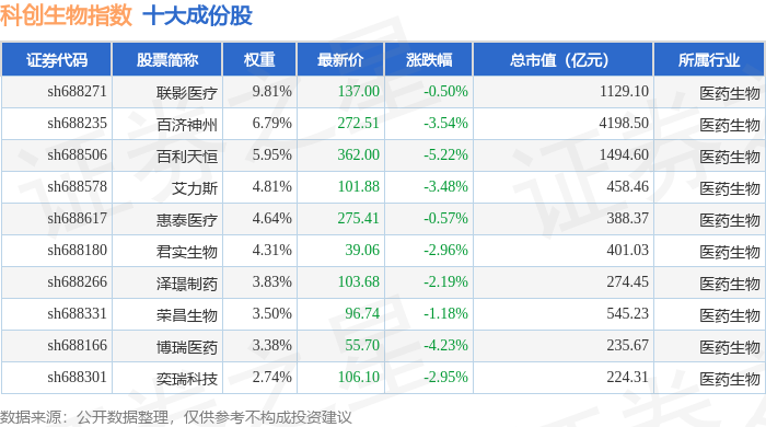 科创生物(000683)指数十大成份股详情如下: