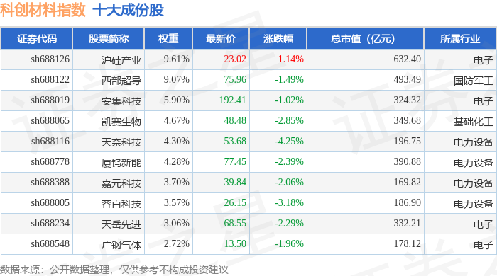 证券之星消息,11月4日,科创材料(000689)指数报收于1139.8点,跌1.54%,成交149.97亿元,换手率2.15%。当日该指数成份股中,上涨的有7家,壹石通以17.24%的涨幅领涨,下跌的有43家,万润新能以7.33%的跌幅领跌。