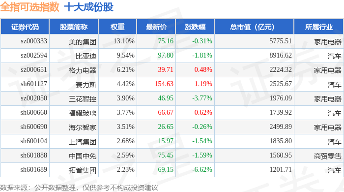 证券之星消息,11月4日,全指可选(000989)指数报收于5485.89点,跌1.26%,成交710.42亿元,换手率1.45%。当日该指数成份股中,上涨的有20家,万向钱潮以4.18%的涨幅领涨,下跌的有90家,拓普集团以6.62%的跌幅领跌。