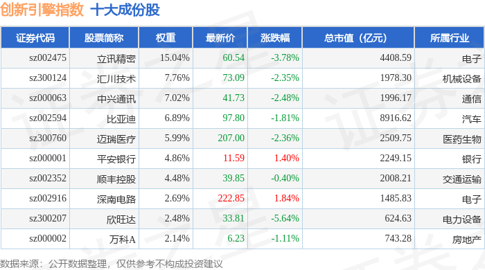 证券之星消息,11月4日,创新引擎(399050)指数报收于3036.46点,跌2.19%,成交656.84亿元,换手率1.37%。当日该指数成份股中,上涨的有4家,深南电路以1.84%的涨幅领涨,下跌的有44家,信维通信以5.7%的跌幅领跌。