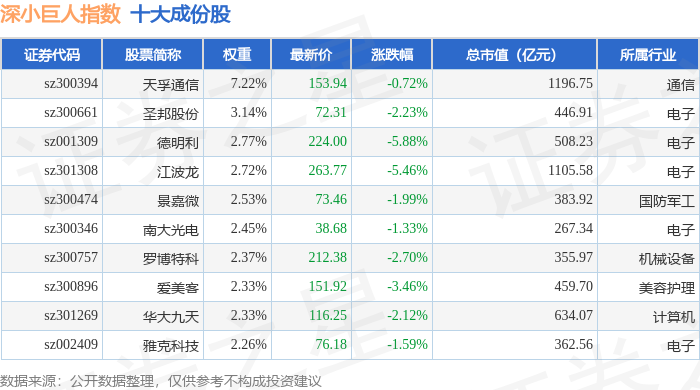 证券之星消息,11月4日,深小巨人(399268)指数报收于1957.3点,跌1.93%,成交493.71亿元,换手率3.22%。当日该指数成份股中,上涨的有16家,中科信息以4.51%的涨幅领涨,下跌的有84家,航天智造以6.33%的跌幅领跌。