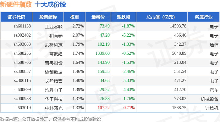 资金流向方面,新硬件(399360)指数成份股当日主力资金净流出合计87.76亿元,游资资金净流入合计23.96亿元,散户资金净流入合计63.8亿元。成份股资金流向详情见下表: