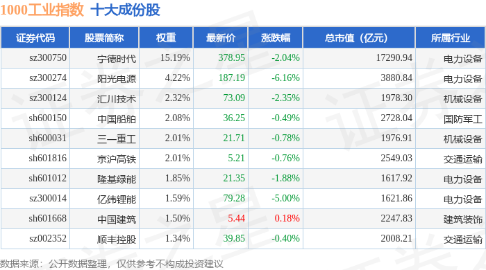 资金流向方面,1000工业(399383)指数成份股当日主力资金净流出合计164.4亿元,游资资金净流入合计50.78亿元,散户资金净流入合计113.62亿元。成份股资金流向详情见下表: