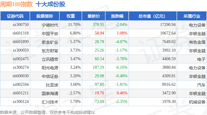 证券之星消息,11月4日,周期100(399402)指数报收于3734.91点,跌1.53%,成交1821.2亿元,换手率0.95%。当日该指数成份股中,上涨的有19家,包钢股份以5.26%的涨幅领涨,下跌的有77家,招商轮船以9.54%的跌幅领跌。
