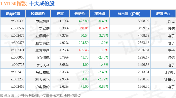 证券之星消息,11月4日,TMT50(399610)指数报收于9211.05点,跌1.38%,成交1420.08亿元,换手率1.96%。当日该指数成份股中,上涨的有10家,三七互娱以2.58%的涨幅领涨,下跌的有40家,欣旺达以5.64%的跌幅领跌。