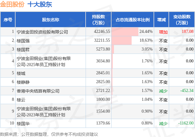 根据金田股份2025年三季报公布的十大股东详情如下: