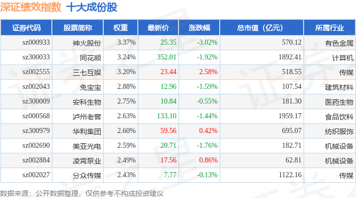 深证绩效(399655)指数十大成份股详情如下: