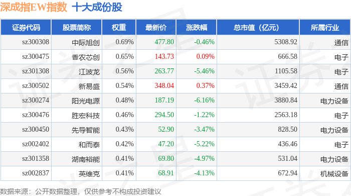 证券之星消息,11月4日,深成指EW(399659)指数报收于4580.66点,跌1.67%,成交5035.01亿元,换手率1.79%。当日该指数成份股中,上涨的有81家,华兰疫苗以11.75%的涨幅领涨,下跌的有412家,常山药业以20.0%的跌幅领跌。