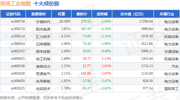 证券之星消息,11月4日,深成工业(399682)指数报收于1882.14点,跌2.13%,成交1226.2亿元,换手率2.29%。当日该指数成份股中,上涨的有21家,思源电气以5.07%的涨幅领涨,下跌的有87家,海力风电以7.51%的跌幅领跌。