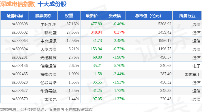 深成电信(399688)指数十大成份股详情如下: