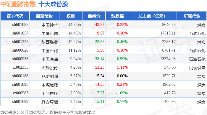 资金流向方面,中证能源(399928)指数成份股当日主力资金净流出合计2.57亿元,游资资金净流入合计2.97亿元,散户资金净流出合计4021.61万元。成份股资金流向详情见下表: