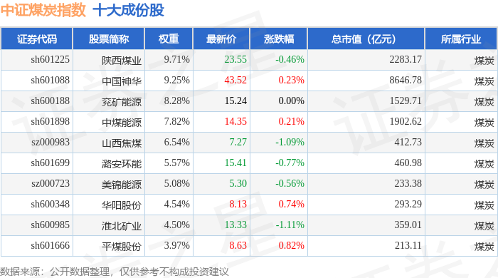 资金流向方面,中证煤炭(399998)指数成份股当日主力资金净流出合计3.04亿元,游资资金净流入合计1.63亿元,散户资金净流入合计1.41亿元。成份股资金流向详情见下表: