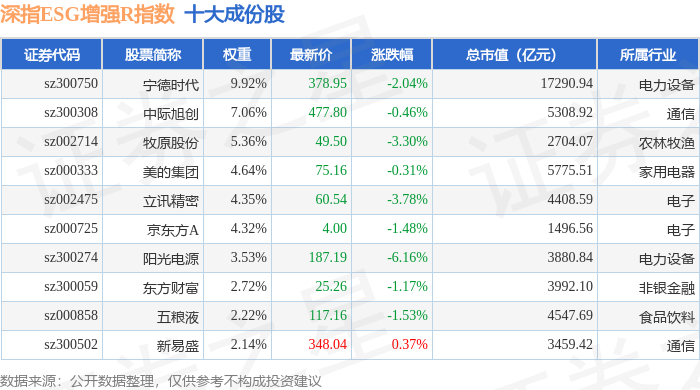 深指ESG增强R(470032)指数十大成份股详情如下: