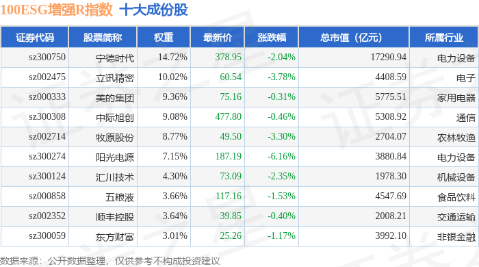 资金流向方面,100ESG增强R(470033)指数成份股当日主力资金净流出合计106.2亿元,游资资金净流入合计24.46亿元,散户资金净流入合计81.74亿元。成份股资金流向详情见下表: