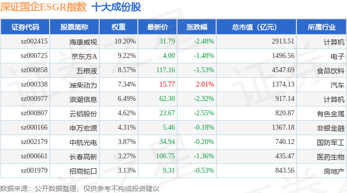 深证国企ESGR(470055)指数十大成份股详情如下: